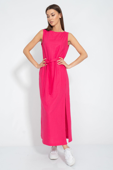 Платье удлиненное с боковым разрезом, из льна с вискозой - это стильное и комфортное платье для жаркого лета. Платье имеет прямой силуэт, с карманами в рельефах по переду. Платье декорировано боковым разрезом, который придает ему легкость и изящество. Лен с вискозой - это натуральная ткань, которая хорошо дышит, приятна к телу. Платье можно сочетать с различными аксессуарами и обувью, создавая элегантные и романтические образы. Рост 164-170