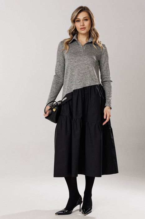 Платье Lars Style 1204 серый меланж, черный