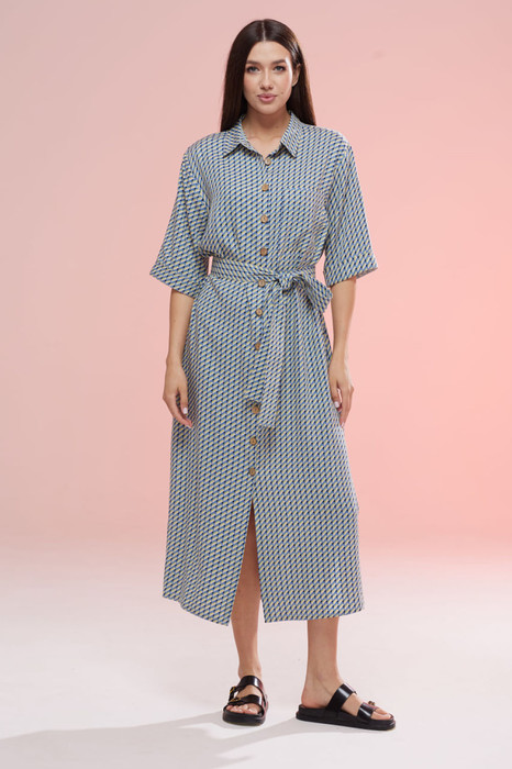 Шикарное платье для самых стильных дам! На полочках нагрудные вытачки. На левой полочке накладной карман. По центру переда цельнокроенные планки на функциональную застёжку петли-пуговицы. Пуговицы могут отличаться от заявленных на фото. В боковых швах платья функциональные боковые карманы. По спинке притачная кокетка. Горловина обработана воротником рубашечного типа со стойкой на функциональную застёжку петлю пуговицу. Пуговицы могут отличаться от заявленных на фото. Шикарная посадка на фигуре. Длина платья по спинке - 120см. Рукав - втачной, одношовный, с цельнокроенной манжетой, длина рукава - 37,5см. Декор, завязывающийся пояс из основной ткани, подчеркивает изящество фигуры. Это стильное платье станет неотъемлемой частью Вашего гардероба. Цвет платья может отличаться на полутон от заявленного на фото. Рост: 164-174
