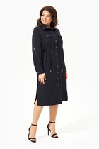 Воздушное элегантное платье. Изделие состоит из отрезного лифа, спереди со складками по линии груди, по спинке - сборка. Юбка изделия имеет расклешение к низу, по талии фрагментами сборка. Лиф и юбку соединяют облегающие рельефные детали, имитирующие фигурный корсет, высотой от 7,5-12 см. Спереди платье на застежке: петли-пуговицы. Горловина имеет V-образный вырез. Рукав втачной, одношовный, с притачной манжетой. Длина рукава в готовом виде 65,5 см. По окату и низу рукава - сборка. Спереди платье имеет застежку на петли-пуговицы. Длина платья по спинке 112-115 см (согласно размерному ряду). Платье на трикотажной подкладке (лиф платья и юбка.)