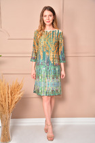27.03 Vilatte Платье на запАх из вискозы с принтом D22.258 черный-бежевый