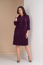 Платье приталенного силуэта, со спущенной линией плеча и объёмными рукавами со сборкой. Центральная бортовая застёжка на петли и пуговицы. Воротник пиджачного типа с отложными лацканами. По переду платья расположены талиевые вытачки и декоративные клапаны. По спинке платья  талиевые вытачки. Имеется съёмный пояс из основной ткани.