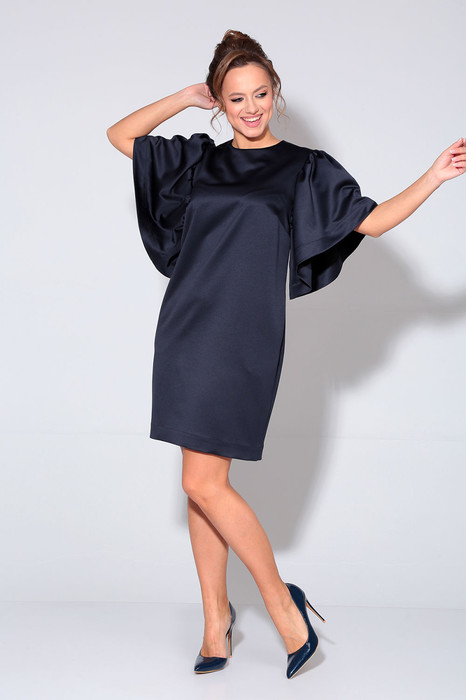 Платье прямого силуэта. По переду нагрудные выточки. Спинка со средним швом, с застёжкой на потайную молнию. Изюминкой платья являются объемные рукава.