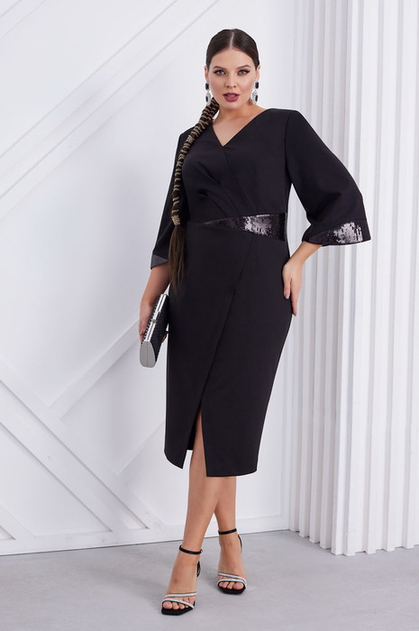 Платье  зрительно заужает фигуру вытягивает силуэт и очень сильно стройнит современный вариант «a little black dress» для женщин с роскошными  формами и утонченным чувством вкуса.