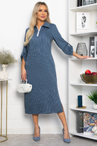 Платье прямого кроя станет идеальным выбором для повседневных рабочих дней и официальных мероприятий. Удобные боковые разрезы придают образу динамичность и легкость. Рукава длиной три четверти изящно завершаются патой с пуговицей, добавляя изделию утонченности. Отложной воротник создает классический и элегантный вид. Это платье станет отличным выбором для тех, кто ценит комфорт и стиль в деловой обстановке.
