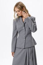Платье полуприлегающего силуэта из трикотажного полотна. Горловина-лодочка. Рукав цельнокроеный, с подрезом выше уровня локтя и узкой длинной манжетой. По переду и спинке выше линии талии подрез, в который вставлена резинка.