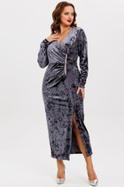 Платье зауженное к низу с декоративными швами и карманами в рельефах. Воротник-стойка с планкой. Рукав спущенный с имитацией манжеты.
