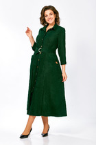 Платье А-силуэта с завышенной талией. Горловина округлой формы. Рукав расширенный к низу, на резинке. Спинка со средним швом с застежкой на воздушную петлю и пуговицу. Юбка состоит из двух объемных присборенных воланов.