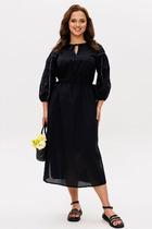 Стильное легкое платье приталенного силуэта. Короткий рукав реглан по низу оформлен притачной манжетой - фонарик. Горловина на сборке, оформлена стойкой. Модель отрезная на линии талии, присборена на эластичную резинку. Низ юбки оформлен притачным воланом.