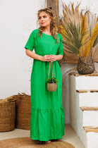 Базовое, прекрасно подходящее для повседневной жизни платье. Комфортный, прямой силуэт мягко сядет по фигуре и не будет сковывать ваших движений. Платье выполнено из мягкого, уютного, приятного на ощупь трикотажа «в косичку». Спущенный рукав длиной 7/8. По переду изделия - карман, который украшен небольшой брошью. Также украшением изделия служит боковой разрез. Вырез горловины "лодочка". Платье прекрасно сочетается с любыми украшениями и разной по стилю обувью. Длина изделия  114 см, длина рукава 53 см. Изделие подойдёт на рост 170 см (+1 см)