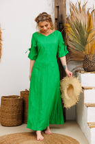 Универсальное платье из легкой плательной ткани крэш в мелкую клетку. Данное платье может быть как нарядным, так и для повседневной носки. Изделие свободного кроя, рукав втачной длиной 3/4, который фиксируется декоративными лентами, с контрастной отделкой по краю. Воротник апаш с декоративной лентой. По переду платья функциональный накладной карман. Спинка прямая удлиненная, по бокам разрезы. Изделие может сочетаться как с лоферами, так и с туфлями и босоножками. Универсальность и практичность платья сделают его любимым в Вашем гардеробе. Длина по спинке 114 см (±1 см), длина рукава 43 см (±1 см). Изделие подойдет на рост 170 см.
