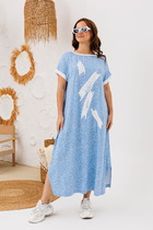 Нарядное платье свободного силуэта выполнено из плиссированной ткани, поставлено на трикотажную подкладку. На полочке обработана отрезная кокетка, остальные воланы отлетные, края заработаны флешем. Рукав втачной, до локтя, слегка расклешен. Спинка идентична полочке, горловина окантована. Платье декорирована цветком. В этом платье прекрасно скрываются все недостатки фигуры, а благодаря легкости ткани ваш образ будет воздушным и нежным!