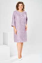 Платье женское полуприлегающего силуэта, отрезное по талии, отрезная присборенная рюша по низу изделия. Вдоль горловины притачная планка. Застежка по переду на петли-пуговицы. В области груди, частично по переду вдоль планки, обработаны рюшки. Рукав-реглан, по низу на резинке. Платье на подкладке, карманы в боковых швах.