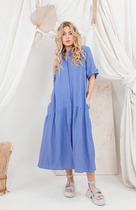 Платье полуприлегающего силуэта. Перед с нагрудными вытачками. Спинка со средним швом, заканчивающимся шлицей. Рукава втачные одношовные. Горловина обработана бейкой из основной ткани. Дополняет модель пояс.