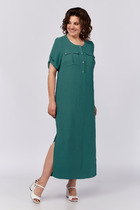 Платье женское свободного силуэта, отрезное по линии талии, расклешённое к низу, выполнено из ткани шифон. По линии талии сборка на резинку «венгерку». Горловина v-образная с небольшими рюшей по переду до линии талии на завязках. Передняя полочка дополнительно украшена рюшами. Рукава одно шовные втачные, по низу легкая сборка. Платье на тонкой трикотажной подкладке с декоративной пришивной тесьмой..
