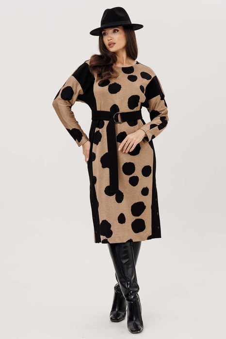 Совместные покупки Омск Женская одежда Платья — Платье MisLana 1238 бежевый с черными кругами