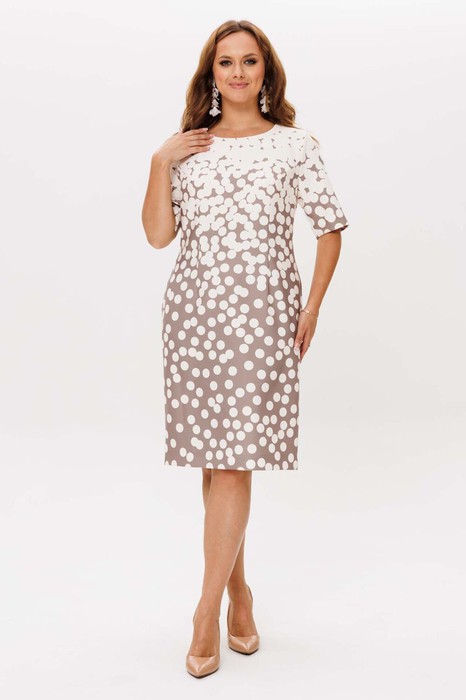 Платье женское полуприлегающего силуэта, перед с нагрудными и талиевыми вытачками, спина с талиевыми вытачками, средним швом, который заканчивается шлицей. Рукав втачной. Горловина руглая. В среднем шве спики обработана тесьма-молния.