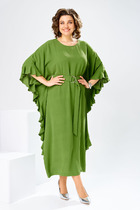 Нарядное женское платье отрезное по линии талии. Верхняя часть выполнена из трикотажного полотна (тянется), нижняя часть из плательного шелка «Армани» (немного тянется). По лифу переда – талиевые вытачки. По лифу спинки средний шов. Горловина округлой формы, обработана окантовкой. Рукава втачные, одношовные, по низу обработаны окантовкой. Нижняя часть платья – «полусолнце» по спинке со средним швом. Платье без подкладки и без застежки. В комплекте пояс. (При массовом производстве пояс может отличаться от фото. Если принципиально- уточняйте какой пояс в наличии.)