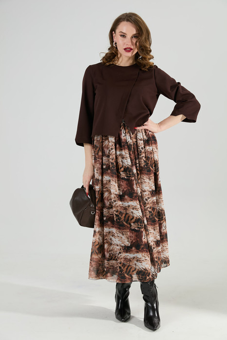 — Платье NIKVA н1007-1 шоколад и тигровая абстракция