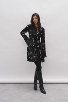 Комфортное платье, состоящее из лифа и юбки, имитирующее костюм-двойку. Лиф прямого кроя с втачным рукавом три четверти. Горловина обработана рубашечным воротником с отрезной стойкой. Застёжка центральная на пуговицы. По талии собрано на резинку. Юбка А-силуэта.
