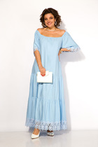 Эффектное двубортное платье длиной миди полуприлегающего силуэта. Линия плеча приспущена, рукав втачной три четверти. Горловина обработана обтачкой с  V-образным вырезом. Линия талии акцентирована притачным поясом. Имеются карманы в боковых швах. Изделие застёгивается на пуговицы. Без подкладки.