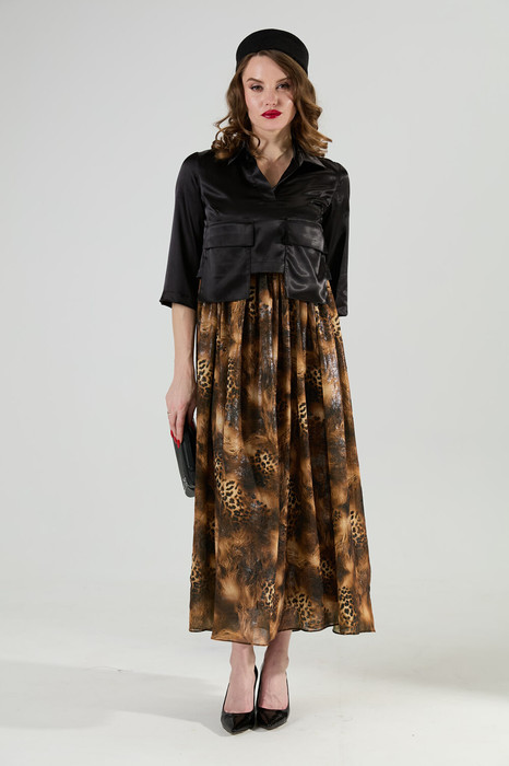 Платье NIKVA н514-4 чёрный и кофейный леопард