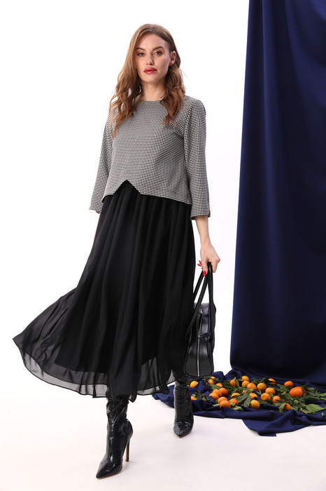 Совместные покупки Омск Женская одежда Платья — Платье NIKVA н740-10 чёрный+чёрно-белая гус лапка