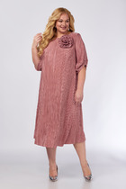 Платье макси прямого силуэта с округлым вырезом, отрезное по линии талии с воланом по низу изделия. Застёжка на петлю и пуговицу по спинке. Рукава втачные, собраны на резинку. Изделие на подкладке. В комплект к платью идут съёмные плиссированные манжеты с декоративными элементами.