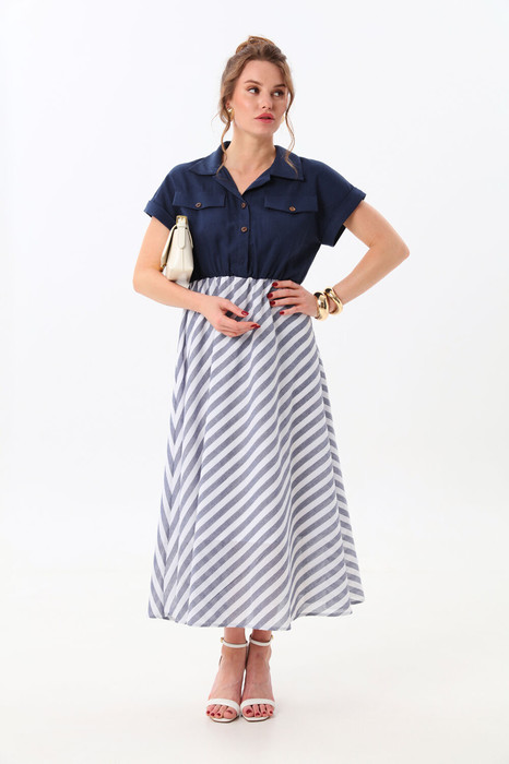 Платье NIKVA н969-1 индиго+сине-белая полоска
