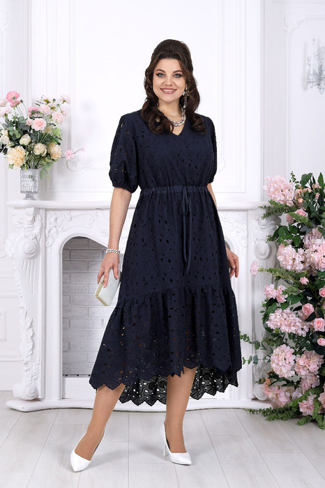 Это платье словно создано для тёплых вечеров, особых встреч и тех моментов, когда хочется выглядеть особенно красиво — нежно, женственно и по-настоящему нарядно. Ажурное хлопковое ришелье придаёт образу изысканность и лёгкость, создавая эффект дорогой, дышащей фактуры с деликатной прозрачностью.