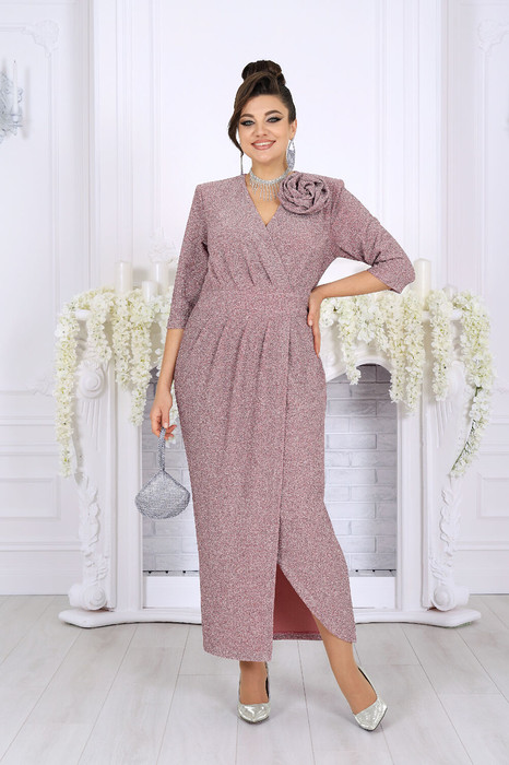 Стильное и эффектное платье для тех, кто хочет блистать на любом празднике. Модель выполнена из эластичного трикотажа с люрексом — ткань красиво переливается и подчёркивает изысканность образа. Удобный крой с акцентом на талию, запах и мягкие складки визуально вытягивают силуэт, а асимметричный низ добавляет динамики. Съемный цветок позволяет менять настроение образа — от сдержанного до яркого и романтичного. Это платье создано для женщин, которые ценят комфорт и красоту в каждом движении.