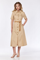Платье прямого покроя из костюмной ткани. Модель сочетает в себе женственность и удобство.. Горловина переда декорирована планками с дизайнерскими пуговицами.В боковых швах сделаны шлицы для удобства ходьбы. Пояс идёт в комплекте.