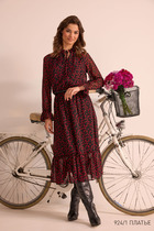 Изящное модное платье из итальянского шифона. Модель свободной формы, по линии талии вставлена резинка, расширенное к низу. Платье отрезное чуть выше линии талии с двумя ярусами воланов.
