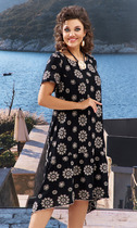 Легкое, воздушное платье из шифона на трикотажной подкладке для женщин подарит ощущение летнего бриза даже в самый знойный день. Этот элегантный наряд обязательно привлечет внимание окружающих! Нежный дизайн ткани добавляет шарм и делает его по-настоящему женственным. Крой А-силуэт нарядного изделия подходит как для повседневного образа, так и для особых случаев. Силуэт модели выделяет женственность фигуры и делает образ стильным. Платье создано для тех, кто предпочитает удобство и стиль в одном флаконе. Миди-длина платья и воланы подчеркнут грацию фигуры и добавят загадочность Вашему образу. Перед платья частично на застежке на петли и пуговицы. Рукав втачной, 3/4, по низу на резинке. Выбрав эту модель, Вы точно будете выглядеть неповторимо на любых мероприятиях!