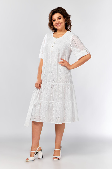 Нарядное однотонное платье из шитья станет красивым дополнением элегантного, женственного образа. Необычная модель трапециевидного силуэта сделает Вашу фигуру грациозной. Платье выполнено из натуральной хлопчатобумажной ткани, которая подарит комфорт в процессе носки. Универсальное и практичное платье в два яруса воланов по низу, собранных на сборку, длиной ниже колена. На переде платья есть нагрудные вытачки, а также цельнокроеная планка, которая декорирована пуговицами и петлями. Вырез горловины круглый. Рукав втачной, короткий. По нижней части рукава есть манжет, который декорирован пуговицей. В модели есть съёмный пояс. Платье на подкладке из натуральной хлопчатобумажной ткани. Подойдёт для посещения деловых мероприятий и торжественных событий, таких как свадьба, выпускной, день рождения.