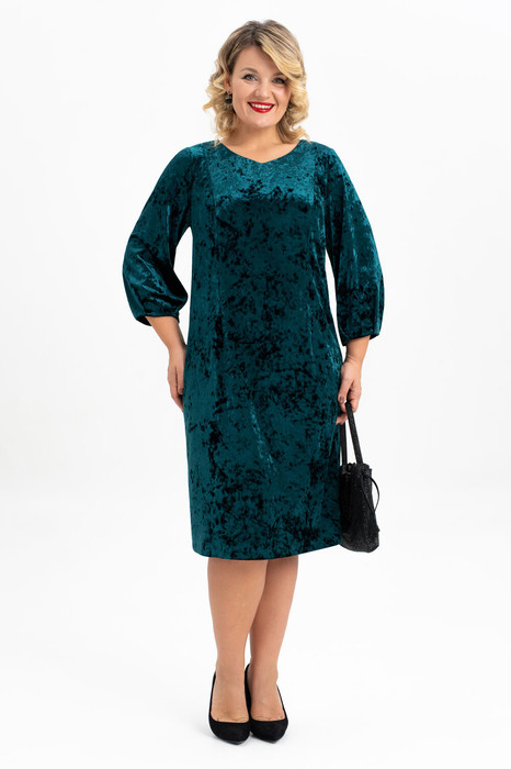 Элегантное нарядное платье классической длины , ниже колена выполнено из мягкого эластичного бархата. Прямой силуэт деликатно подчеркивает женственные формы. Классический вырез-лодочка горловины безупречной глубины эффектно преподносит зону декольте. Воздушный втачной рукав длиной 3/4, по низу которого есть складки усиливает ощущение хрупкости и женственности. По спинке обработана застежка на петли и пуговицы, и съемный бант из контрастной ткани. Стильное поддерживает трендовые тенденции у молодежи современное, такие вещи выделяют утонченный, изысканный вкус и элегантность у девушки модели.