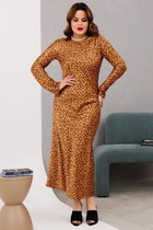 Нарядное платье, полуприлегающего силуэта, выполнено из эластичного трикотажного полотна. Платье по переду из нескольких частей, со вставками из отделочной ткани с паетками. По спинке со средним швом и двумя вертикальными вытачками. Фигурный вырез горловины переда и горловина спинки обработаны обтачками. Рукав короткий крылышко. Правый рукав выполнен из отделочной ткани с паетками. Платье без подклада и застежек. Длина изделия по спинке в 46 р-ре – 90 см. в 56 р-ре – 95 см.