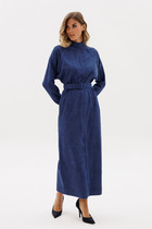 Легкое повседневное платье прилегающего силуэта длиной макси, выполнено из хлопкового полотна. Платье с отрезной завышенной линией талии. Перед и спинка верха целые со сборкой по шву притачивания. Низ переда целый, спинка с отрезными бочками, средняя часть спинки по талии собрана на шпульную резину. Рукав – реглан по низу собран на резину. Длина рукава в 46 р-ре – 15 см. в 58 р-ре – 17 см., ширина рукава по низу в 46 р-ре – 36 см. в 58 – 42 см. Горловина со сборкой на резину, что позволяет носить платье с открытыми плечами. Платье без подклада и застежек. Длина изделия по середине спинки в 46 р-ре –В В 130 см. в 58 р-ре – 136 см.