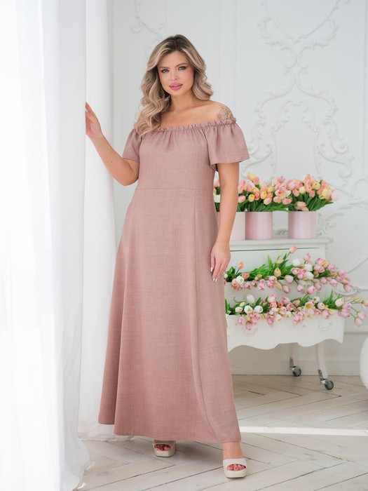 Повседневное платья в стиле Кантри длиной макси, выполнено из тонкой плательной ткани с эффектом крэш. Платье отрезное по линии талии. Верх переда платья целый. Спинка с отрезными бочками. В швах притачивания бочков воздушные петли со шнуровкой, позволяющей регулировать свободу прилегания по фигуре. Рукав-реглан короткий. Длина рукава от горловины в 50 р-ре – 19 см. в 62 р-ре – 22 см., ширина рукава по низу в 50 р-ре – 51 см. в 62 р-ре – 60 см. Горловина со сборкой на резину позволяет носить платье с открытыми плечами. Юбка 4-х клинка слегка расклешенная к низу. Платье без застежек и подклада. Длина изделия по спинке в 50 р-ре – 128 см. в 64 р-ре – 135 см.
