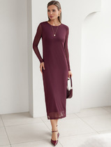 Vilatte Платье из сетки с подкладкой D22.238 бургунди