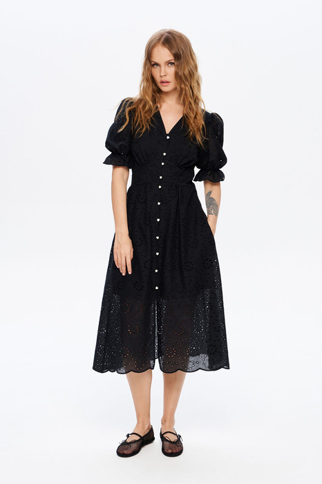 Миди-платье приталенного силуэта из хлопкового ришелье.