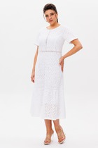Платье прямого силуэта, слегка заужено книзу из плательной ткани.