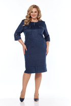 Платье женское прилегающего силуэта из трикотажной ткани. В боковом шве расположен разрез. Горловина оформлена декоративным вырезом. Рукав прямой одношовный.