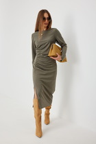 Летящее женственное платье станет идеальным дополнением к вашему образу на Новый год. Эта модель универсальна и подходит для любого праздника, придавая вам женственность, элегантность и праздничное настроение. Платье свободного кроя с длинными рукавами и манжетами по низу. V-образный вырез с эффектом запаха подчеркивает зону декольте. Изделие на подкладке, в комплекте идет атласный пояс.