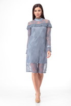 Легкое платье прямого силуэта. Округлая горловина на внутренней обтачке. Короткие цельнокроеные рукава, оканчиваются манжетами на отворотах. В среднем шве спинки расположен разрез с застежкой на пуговицу. Пояс из основного материала в комплекте. Низ ровный, без разрезов.