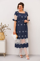 Платье свободного кроя, длиной до щиколотки, расширенное к низу. По спинке кокетка и рельефы. От кокетки по спинке заложена бантовая складка по центру. По переду кокетка и рельефы. В шов притачивания кокетки вставлены клапана. В боковых швах обработаны карманы. Рукава одношовные, втачные, длинные. По низу рукава обработаны складки, разрез и притачная манжета. По манжете застежка на кнопки. По переду застежка на кнопки на притачной планке. По горловине воротник рубашечного типа на отрезной стойке. Платье дополняет съемный пояс.