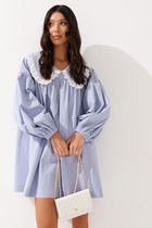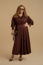 Платье женское предназначено для повседневной носки. Платье женское расширенное к низу, длиной до середины икры. Платье отрезное по линии талии. Верхняя часть переда с 2-мя нагрудными вытачками. Верхняя часть спинки цельнокроеная. Нижняя часть платья с лёгкой сборкой по верхнему срезу, с притачным воланом с лёгкой сборкой по верхнему срезу. Платье с карманами в боковых швах. Горловина с V-образным вырезом, обточная без воротника. Рукав втачной, двухшовный, длиной до локтя, с кулисой на верхнем шве. Платье с плечевыми накладками. Длина спинки 113 см, длина рукава 34 см.