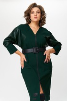 Платье женское предназначено для повседневной носки. Платье женское прямого силуэта, длиной за колено. Перед и спинка цельнокроеные. Горловина круглая с втачной планкой из отделочной ткани. Правый плечевой шов с настрочным погоном из отделочной ткани, декорированным 3-мя пришивными пуговицами. Платье со спущенным плечом. Рукав втачной, одно шовный, длинный с притачной манжетой из отделочной ткани. Низ платья с притачной планкой из отделочной ткани. Платье на подкладке. Платье без плечевых накладок. Длина спинки платья 103,5 см. Длина рукава 47 см, длина рукава от горловины 67 см.