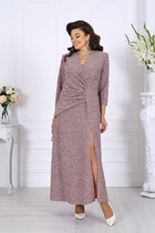 Платье женское коктейльное. Платье женское, полу прилегающего силуэта, длиной за колено. Перед отрезной по линии талии. Верхняя часть переда цельнокроеная с поясом расположенным на уровне линии талии и закреплённом в боковом шве, с 2-мя односторонними складками. Нижняя часть переда с отлетной фигурной баской, с 2-мя одно сторонними складками по линии талии. Спинка со средним швом, заканчивающимся шлицей. Горловина круглая, обточная, без воротника. Застёжка на потайную тесьму-молнию в среднем шве спинки. Рукав втачной, 2-х шовный, диной 3/4. Верхняя часть переда на притачной подкладке. Платье с плечевыми накладками. Длина платья по спинке 102 см, длина рукава 43,5 см.