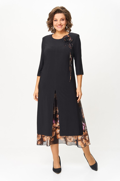 Платье Svetlana Style 1958 черный+рыжие цветы